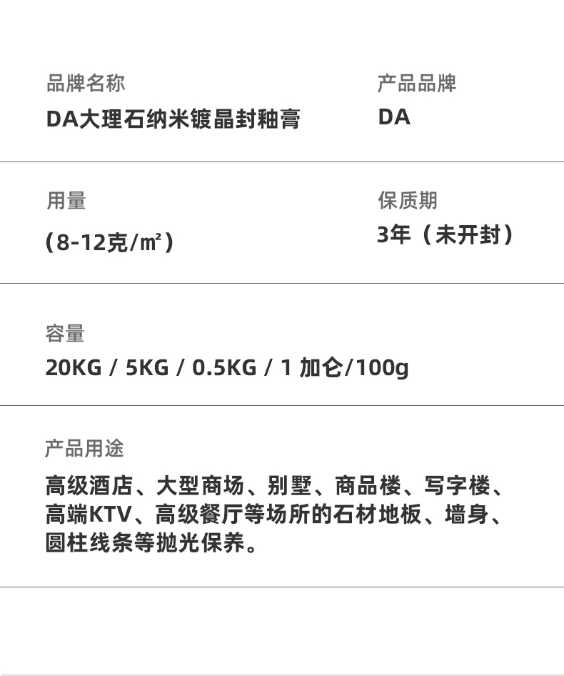 DA -001 STONE NANO CRYSTALLINE SEALING PASTE