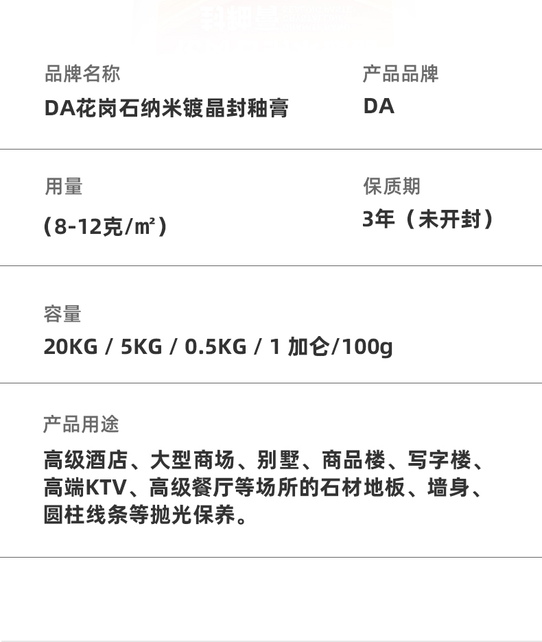 DA -004 GRANITE NANO CRYSTALLINE SEALING PASTE